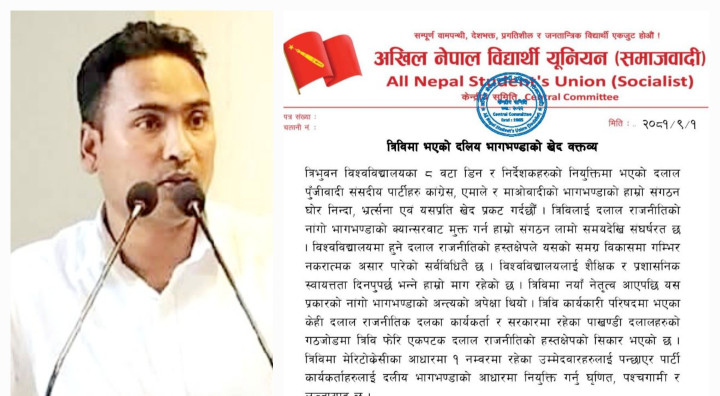 त्रिविमा डीन नियुक्तिमा भएको दलिय भागभण्डा खारेज गर्न अखिल (समाजवादी) को माग,मेरिटका आधारमा नियुक्ति नगरे....