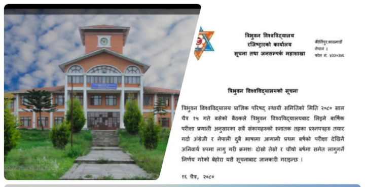 अब देखि त्रि वि को परिक्षामा प्रश्नपत्र नेपाली र अङ्ग्रेजी दुबै माध्यम बाट हुने